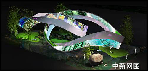 李沛介紹,整個展館將掩映于竹林碧水之間,環(huán)體主體材料為竹結構,外表則用紙作裝飾,十分環(huán)保。展館分為一個立體影院和自然桃花源、人文桃花源、理想桃花源三方面的內容。其中自然桃花源以自然風光為主要內容,向觀眾展現(xiàn)湖南秀美的湖光山色,使其感受到大自然的博大睿智;人文桃花源則是表達都市的理解、關愛與和諧,表達“惟楚有才,于斯為盛“的人文情懷;理想桃花源則是表現(xiàn)人與城市、與自然的融合,觀眾們可以用電子壁畫等多媒體現(xiàn)代手段在現(xiàn)場任意涂鴉,抒發(fā)對于未來城市的暢想。