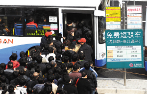 浦東公交此次共投放了48輛車,每分鐘發(fā)一班,但由于道路交通擁堵,幾乎車車滿載。駕駛員反映,前幾天從龍陽路站到張江高科站只需十幾分鐘,今早卻要花40分鐘。芳甸路路口,進入張江高科園區(qū)的第一個轉彎處,車輛遇紅燈往往要等上三輪才過得去。9時10分,記者在龍陽路站看到,出來換乘公交的人還是絡繹不絕。