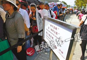 昨上午12點,英國館前排隊達到一公里左右。記者發(fā)現(xiàn),英國方面工作做得非常細,每隔幾十米就有一個提醒標牌——“參觀種子圣殿,此地大約還需要×分鐘”。