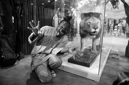 今天,游客走進非洲聯合館,會看到很多驚喜:為了使許多沒有機會去非洲的觀眾親眼目睹原汁原味的非洲動物,素有“野生動物天堂”之稱的東非國家肯尼亞特別給上海世博會帶來兩份神秘禮物:“獅子標本”和“寶寶犀牛標本”。威猛的“獅子王”與可愛的“寶寶犀!睂⒃诮酉聛淼娜兆永镌诳夏醽喺桂^中歡迎八方來客。(楊玉紅)