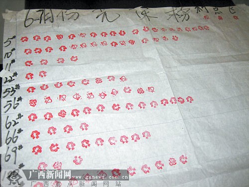 據稱,這個光榮榜上的小紅戳均只代表給予賣淫女的精神嘉獎。