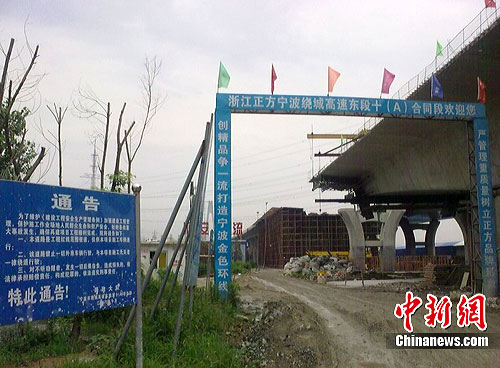 記者在工地出口處的國道主干線寧波繞城高速公路土建工程十(A)合同段施工告示牌看到,該工程“建設單位:寧波市繞城高速公路東段建設指揮部;施工單位:浙江正方交通建設有限公司;項目經理:何瑞峰 ;工期:22個月;工程造價:207724089元。”