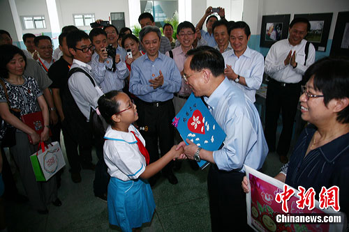 曾蔭權在四川省委書記劉奇葆的陪同下先后參觀了東方汽輪機有限公司新基地、東汽醫院、康復及假肢中心,以及德陽市第一小學。他仔細問詢因地震致殘病人的恢復情況,與小學生親切合影。