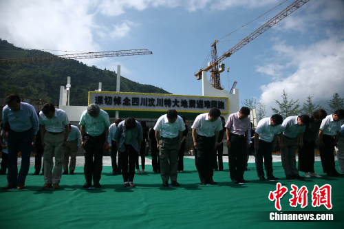 中新網都江堰7月27日電(劉賢 張浪)27日,曾蔭權率領的香港特區政府代表團抵達四川地震災區汶川。在參觀完香港援川項目以后,曾蔭權一行隨即來到漩口中學地震遺址,向汶川大地震遇難者和在抗震救災中英勇犧牲的烈士默哀鞠躬,獻花祭奠。