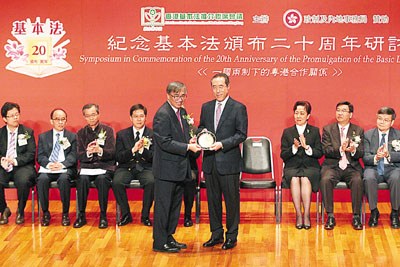 香港基本法推介聯席會議昨日舉行“紀念《基本法》頒布20周年研討會”,唐英年在致開幕辭時表示,今年10月召開的十七大五中全會,通過了“十二五”規劃建議,作為未來5年的發展藍圖,透過擴大內需、發展現代制造業和服務業、促進區域協調發展和進一步推動城市化等戰略,加快轉變經濟發展方式,全面建設小康社會。