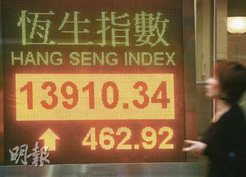 恒指24日勁升462點,收報13910點,直逼14000點關口,成交同時增加,港元匯價又告轉(zhuǎn)強,或反映有資金流入香港。香港金管局24日晚再向市場投入31億港元,這是自上周五以來第三次向市場注資,令截至本周五銀行體系結余增至1232億元。任志剛24日早被香港傳媒問及時,稱注資很正常。