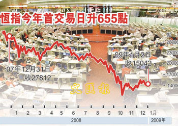 中新網(wǎng)1月5日電 據(jù)香港《文匯報》報道,溫家寶總理在元旦日跟大家打氣,中央再推“雙十規(guī)劃”促進經(jīng)濟,受惠股份如中資金融股、內(nèi)需股、汽車股及家電股均被市場看高一線,加上受3G發(fā)牌刺激的電訊股,及“松綁”的內(nèi)房股,預(yù)計5日復(fù)市的A股及港股將受惠利好消息而向好。