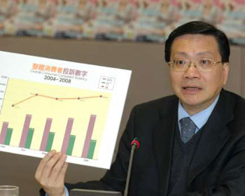 消委會(huì)去年接獲4.2萬(wàn)宗投訴,較前年增加3500宗,打破歷年紀(jì)錄。張炳良總結(jié)數(shù)字時(shí)表示,投訴個(gè)案創(chuàng)新高,主要是消費(fèi)者于去年面對(duì)金融危機(jī),令金融服務(wù)投訴大幅攀升,增幅超過(guò)10倍。若“扣除”9200多宗金融服務(wù)投訴個(gè)案,多項(xiàng)主要類(lèi)別投訴均下降,包括電訊、商品和服務(wù),而涉及旅客投訴也減少。