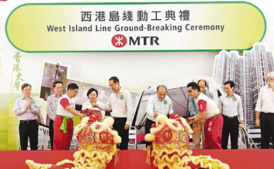 西港島線是現有港島線的延線,全長約3公里,共設3個車站,包括西營盤、大學及堅尼地城,該線10日舉行動工典禮。唐英年出席典禮致辭時說,西港島線是近年首條落實動工的新鐵路,連接上環和西區,通車后往返堅尼地城與上環只需8分鐘,而往返堅尼地城與尖沙嘴也只需14分鐘,預計未來50年節省的車程時間,可為香港帶來620億元的經濟效益。