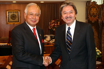 中新網3月18日電 據香港特區政府網站消息,香港財政司司長曾俊華17日與馬來西亞首相納吉布會面,并同意開展兩地避免雙重征稅協議的工作,加強兩地之間的緊密經濟關系。