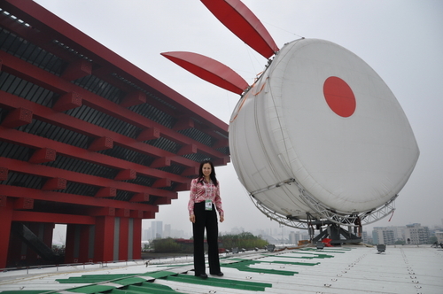 澳門館的玉兔宮燈的兔頭由充氣飛艇的專用織物所造,兔頭可根據(jù)風(fēng)向轉(zhuǎn)動,保持迎風(fēng)姿態(tài)。