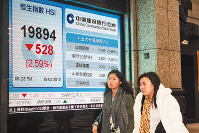 中新網(wǎng)2月20日電 據(jù)香港《文匯報》報道,美國突然調(diào)高貼現(xiàn)利率,市場擔(dān)心美國會提早退市及加息,港股急跌528點,失守20000點,跌幅達(dá)2.6%,是19日亞太區(qū)股市中表現(xiàn)最差的市場。香港地產(chǎn)股、內(nèi)銀股及資源股成為跌市重災(zāi)區(qū),成交淡靜只有430.7億元。