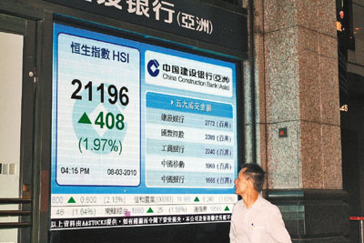 中新網(wǎng)3月9日電 據(jù)香港《文匯報(bào)》報(bào)道,美國就業(yè)數(shù)據(jù)理想,加上法國表示會(huì)支持希臘,紓緩歐洲債務(wù)危機(jī),亞太區(qū)股市普遍造好,港股8日也跟隨上升,最多曾升469點(diǎn)至最高的21257點(diǎn),收市報(bào)21196.8點(diǎn),升408.9點(diǎn),不單收復(fù)21000點(diǎn)大關(guān),更一舉升穿50天線,創(chuàng)6周收市新高,升幅達(dá)2%,但成交額只有650億元。