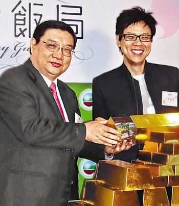 中新網(wǎng)8月14日電 據(jù)香港《文匯報(bào)》報(bào)道,香港無(wú)線(xiàn)總經(jīng)理陳志云13日邀請(qǐng)財(cái)經(jīng)界名人曹仁超接受《志云飯局》訪(fǎng)問(wèn),更送上多條大金磚給曹仁超。陳志云大爆曹仁超愛(ài)收藏金磚,最高峰時(shí)期家中有三個(gè)保險(xiǎn)箱擺放金磚,收藏黃金1000兩,即相等于眼前的金磚約40條。