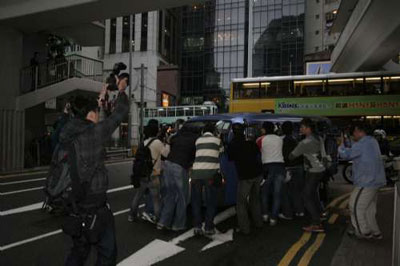 車輛在軍器廠街駛進警察總部的路程,原本只需短短一分鐘,因在場守候的記者剛見客貨車駛進,即蜂擁而上包圍客貨車拍照,結果車輛花了多達15分鐘,才能進入大廈內(nèi),場面一度混亂,期間警方出動十多名警員在馬路上維持秩序。陳的私人保鏢3日曾尾隨警方車輛駛離寓所,但4日總部現(xiàn)場所見,他們似已再無隨行。