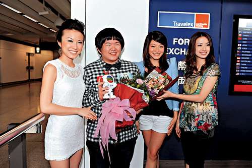 中新網(wǎng)5月6日電 憑《I Will Always Love You》一曲在國際爆紅,有“臺版蘇珊大嬸”之稱的小胖林育群,5日由臺灣來港展開五天宣傳之旅,無線特地派出應(yīng)屆三位港姐劉倩婷、熊穎詩及李姿敏到機場獻花給他,令小胖高興得一直在冒汗。對于外形備受批評,但小胖坦言發(fā)型、肚腩及領(lǐng)結(jié)都是他的標(biāo)志,所以無意減肥或整容,倒希望眼睛可以大一點,因眼睛小戴隱形眼鏡有難度。