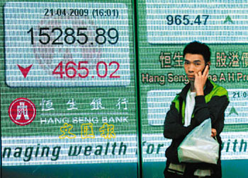 中新網(wǎng)4月22日電 據(jù)香港《文匯報(bào)》報(bào)道,美股大跌近300點(diǎn),令港股21日裂口低開685點(diǎn),是近期少見的大調(diào)整,匯控等一眾金融股成為跌市火車頭。下午港股跌幅收窄,全日收?qǐng)?bào)15285點(diǎn),跌465點(diǎn),跌幅3%,為兩周來最大跌幅,成交縮至576.8億。