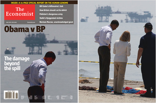 據(jù)美國《紐約時報》和《赫芬頓郵報》消息,5月28日出版的英國著名雜志《經(jīng)濟(jì)學(xué)人》,其封面故事是奧巴馬與墨西哥灣漏油事故。日前該雜志遭到美國方面的聲討和譴責(zé),原因是雜志在封面圖片中對奧巴馬的一張照片進(jìn)行了改動,使其看起來孤獨、無助。