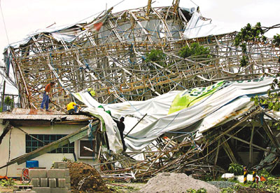 菲律賓群島位于西太平洋,平均每年遭受臺風和熱帶風暴襲擊20多次,去年風災造成43.8億美元經濟損失。2009年9月底和10月,熱帶風暴凱薩娜和臺風芭瑪相繼吹襲菲律賓,引發嚴重洪災和山體滑坡,造成約1000人死亡。