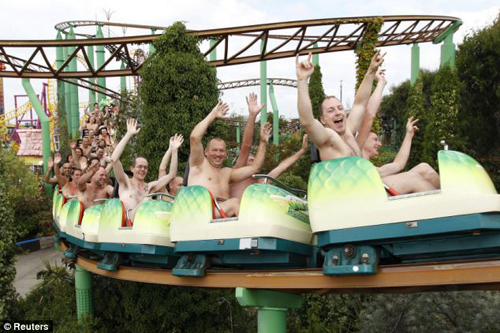 中新網8月9日電 據英國媒體報道,當地時間8月8日,102名英國男女齊聚艾塞克斯郡冒險島游樂園,將衣服全部脫掉,體驗裸體乘坐“綠色尖叫”過山車的刺激感覺。這102人也創造了一項新的世界紀錄。