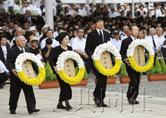 中新網(wǎng)8月9日電 據(jù)日本共同社網(wǎng)站報道,8月9日,日本長崎市迎來了原子彈爆炸65周年紀(jì)念日,原子彈爆炸遇難者慰靈和平祈愿儀式在長崎市松山町和平公園內(nèi)舉行。英、法兩個核持有國首次出席該紀(jì)念活動。除日本首相菅直人到場之外,包括俄羅斯、巴基斯坦及以色列在內(nèi)的32個國家均派代表列席,人數(shù)之多創(chuàng)歷史紀(jì)錄。當(dāng)?shù)貢r間當(dāng)天中午11點(diǎn)02分,全場在65年前原子彈投下的時刻集體默哀,為死難者祈福。