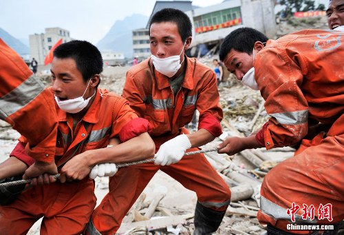 該媒體報道稱,在中國甘肅舟曲,生命奇跡仍在上演,1名被埋超50小時的男子10日被救援人員從廢墟中成功的救了出來。