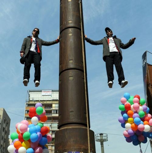 9日,兄弟兩人在智利首都圣地亞哥熱鬧的街頭展開令人驚訝的絕技表演,吸引了眾多路人駐足觀看,有人開車路過,還特地停車前來看熱鬧。只見兩人神態輕松地漂浮在7米高的半空中,只有各出一只手扶著同一根立地大柱子,雙腳懸空,就這樣保持“站姿”“站”了足足200分鐘,創造了一項新的世界紀錄。