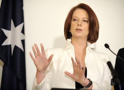 今年6月,時任總理陸克文因推行超額資源稅等政策引起業界不滿,執政黨工黨的支持率下降,6月24日在工黨黨內選舉中吉拉德當選黨首,取代陸克文出任總理,并宣誓就職。