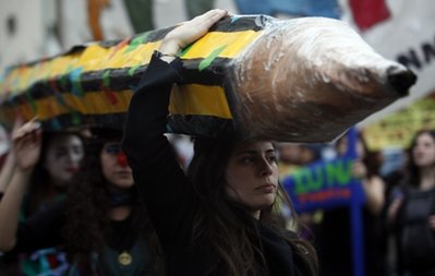 示威隊伍從國會一路游行到總統府。他們抗議長期以來公共教育經費遭刪減,導致學校學習環境惡劣,不僅冬天沒有暖氣、電力系統老舊,而且天花板漏水、窗戶玻璃破了也都沒有更新,問題一籮筐。
