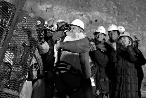 12日晚,從營救行動(dòng)正式開始,智利總統(tǒng)皮涅拉就一直守在現(xiàn)場。當(dāng)阿瓦洛斯從“膠囊”中走出來時(shí),守在洞口的皮涅拉立即與這名渾身還臟兮兮的礦工緊緊擁抱。