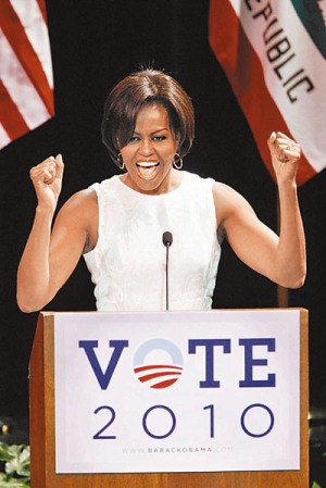中新網11月1日電 據香港《文匯報》網站報道,美國中期選舉11月2日舉行,被視為民主黨秘密武器的美國第一夫人米歇爾.奧巴馬也盡最后努力拉票。她連日穿梭美國西岸各個州,以“慈母”形象為不同候選人站臺,很受選民歡迎。政治分析家認為,米歇爾的親和形象,有助于推動未定投票取向的選民為民主黨投票。