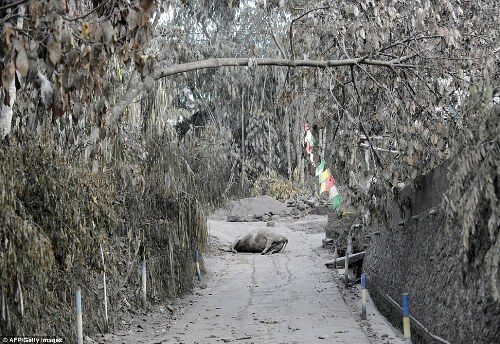 當(dāng)火山暫時停歇,厚厚的火山灰隨之降落地面,村民們賴以生存的家園也變得面目全非。當(dāng)?shù)毓賳T稱,火山噴發(fā)所及之地已完全沒有生命跡象,沒有樹木、沒有農(nóng)田,房子也被燒焦,所有的東西都被覆蓋了厚厚的火山灰。