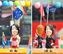 中新網(wǎng)11月12日電 據(jù)外媒報(bào)道,G20峰會(huì)正在韓國首爾舉行,當(dāng)?shù)厍逑◤V場上特地展出了參加G20峰會(huì)領(lǐng)導(dǎo)人的小型人像,誰知卻鬧出“烏龍”:代表澳大利亞總理吉拉德的人像穿上了一身傳統(tǒng)的奧地利服裝——紅白相間的縐摺連衣裙,還帶著粉紅的圍裙,猶如電影《音樂之聲》中的造型。后來韓國方面意識(shí)到了錯(cuò)誤很快更換了衣服。
