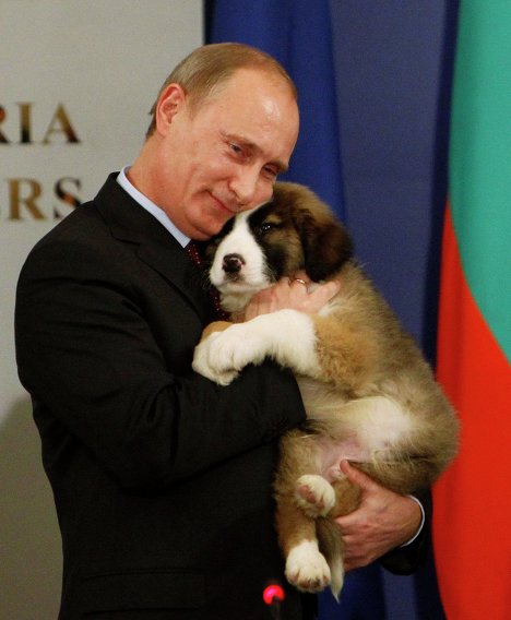 中新網11月15日電 據俄新網報道,11月13日,保加利亞總理鮑里索夫在索非亞與俄總理普京舉行會談。在會后的新聞發布會上,鮑里索夫將一只保加利亞牧羊犬贈送給普京。