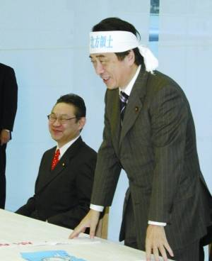 在和長谷川市長交談前,菅直人頭上系了一條寫有“歸還北方四島”的頭巾,表達對此事的強硬態度。