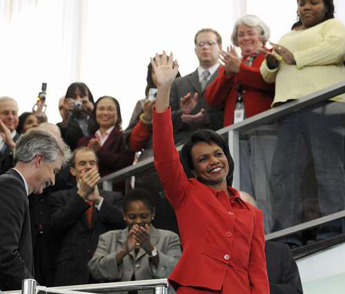 賴斯在二十日政府換屆時(shí)方才正式卸任,不過(guò)她在這次告別后便不會(huì)再返回國(guó)務(wù)卿辦公室。她在辦公室的桌上留下一張字條,歡迎她的繼任人希拉里。