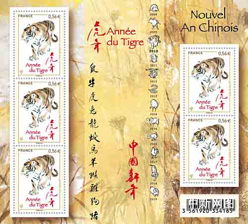 這是繼發行雞年、狗年、豬年、鼠年和牛年紀念郵票之后,法國第6次發行中國農歷生肖紀念郵票。