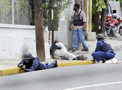軍警周二在金斯敦各處布防,并在西區(qū)繼續(xù)沿街搜索,槍聲不時響起。金斯敦的學校周二停課,商店停業(yè)。西區(qū)黑煙滾滾,武裝直升機盤旋。目擊記者稱,3輛裝滿尸體的貨車在一間主要醫(yī)院的停尸間卸下尸體。