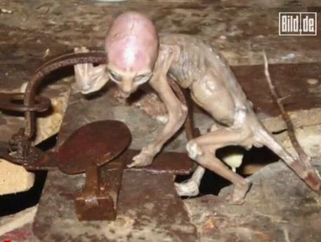 那個被捕鼠器捉到的外星人寶寶,后來遭到農場工作人員的“毒手”,被活活淹死了。它的尸體被制成標本,并進行了各種分析實驗。不明飛行物專家認為,它就是一個外星人;而其他的科學家更愿意相信它是地球上一種未知生物。到目前為止,所有的DNA檢測還沒有得出確切的結果。