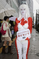 中新網3月25日電 據日本共同社報道,美國動物保護組織“PETA”的一名加拿大籍女性成員24日在東京赤坂的加拿大駐日本大使館前,以全身僅穿內衣的方式抗議捕獵海豹獲取毛皮。