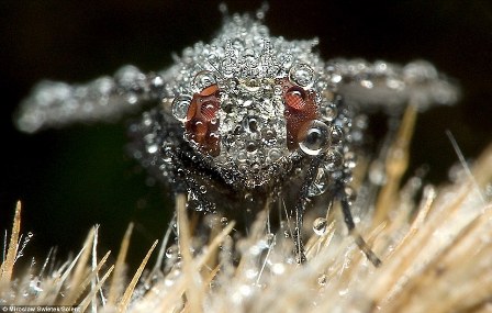 為了呈現(xiàn)出昆蟲特別的一面。日前,米羅斯瓦夫在凌晨3點時分就來到樹林中。那時,小東西們還在睡覺,身上則披掛著滴滴露水,顯得格外晶瑩剔透。米羅斯瓦夫用照相機拍下了它們有趣的樣子,鏡頭距小昆蟲僅幾毫米。