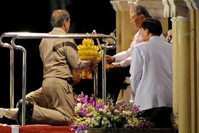 81歲的泰王普密蓬在王后詩麗吉、哇集拉隆功王儲、王室家庭成員以及首相阿披實的陪同下,出席了該活動。他身穿一件白色的外套,坐在輪椅上向數百名前來為他祈福的民眾揮手。