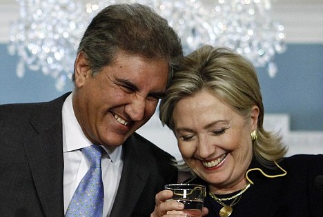 在與來訪的巴基斯坦外交部長馬赫杜姆•沙阿•馬哈茂德•庫雷希共同出席的新聞發布會上,希拉里與客人的“調情”成為人們茶余飯后討論的焦點。