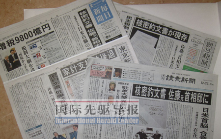 《國際先驅導報》記者劉華發自東京 12月22日,日本《讀賣新聞》晚報在頭版頭條刊文稱,一份由美國前總統尼克松和日本前首相佐藤榮作簽署的有關日美兩國“核密約”的文件,一直保存在日本前首相佐藤榮作的舊宅。