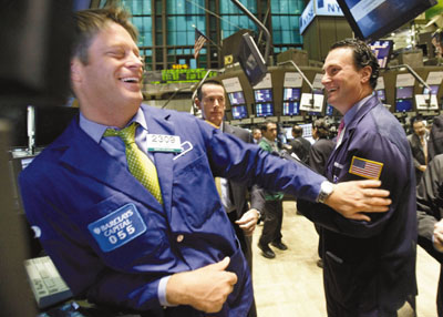 另外,道指中段升129點,報10000.14點,升幅1.3%;納斯達克指數升25點,報2165點;標準普爾500指數升12點,報1085點;倫敦富時100指數收市升2%,報5256點。