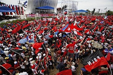 1979年7月19日,桑地諾民族解放陣線(桑解陣)帶領(lǐng)尼加拉瓜人民推翻了索摩查家族長達(dá)40余年的專制統(tǒng)治,入主首都馬那瓜,聯(lián)合社會(huì)各界政治力量成立了民族復(fù)興政府。但桑解陣在1990年全國大選中敗北,成為在野黨。之后,桑解陣幾經(jīng)沉浮,于2006年11月重新成為執(zhí)政黨。桑解陣總書記奧爾特加在2006年11月的尼加拉瓜總統(tǒng)選舉中勝出。