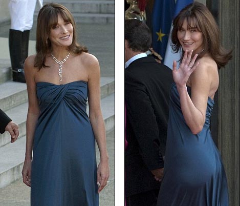 22日,法國總統薩科齊和夫人布魯尼接待前來法國訪問的卡塔爾埃米爾夫婦。在結束各項接待禮儀后,薩科齊牽著布呂尼的手走進愛麗舍宮。而在與守候在外的記者告別前,布魯尼仍不忘微笑揮手,這時的前超級名?芍^“回眸一笑百媚生”。正當記者們狂按相機時,站在愛麗舍宮正門外臺階上的一名衛兵也“激動的不行”,以致眼神發直,腿軟倒地,另外一名衛兵見狀趕緊上前攙扶。