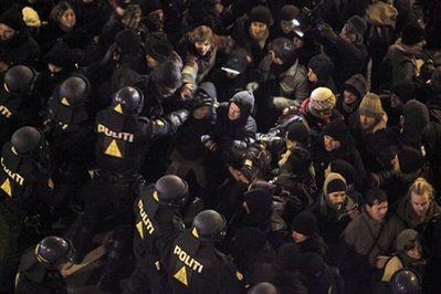 較早前的示威原本和平進行,丹麥電視臺估計示威人數介乎3萬至10萬人,警方則估計示威者超過5萬人,在氣候會議會場外的游行人龍長達6公里。在游行隊伍出發前,當局表示憂慮會有極端分子策動暴力行為,而主辦單位亦呼吁示威者保持冷靜。