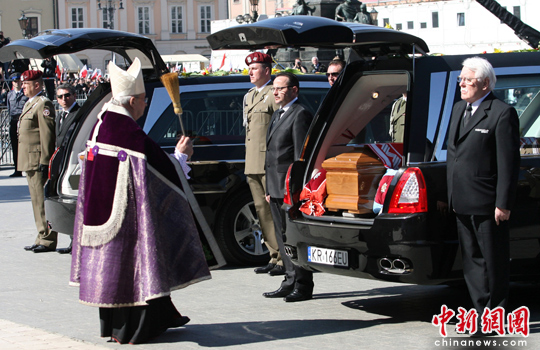 當(dāng)天早些時候,卡欽斯基夫婦的遺體由軍方飛機從首都華沙運至克拉科夫,葬禮結(jié)束后,夫婦二人的遺體將被運往當(dāng)?shù)赜兄锨隁v史的瓦維爾宮安葬。