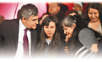 在布朗發言前,一名14歲女孩上臺哭訴,若她在財政部當清潔工的媽媽工資較高,她的生活將截然不同。她說:“如果他們支付最低生活工資,我的媽媽便可負擔地鐵車費,我可每天多見她3小時。”布朗上前擁抱并安慰她,場面感人。